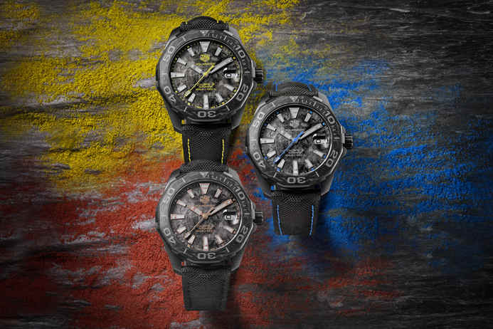 ????泰格豪雅Aquaracer競潛系列碳纖維腕表的制作工藝巧妙采用高溫鍛壓樹脂,隨機(jī)注射碳纖維,因此,每款腕表上如同大理石般交織的黑灰色碳纖維紋路,均為獨(dú)一無二的呈現(xiàn),一眼望去,讓人不禁聯(lián)想到海洋的深邃變幻。配合精美黑色織物表帶以及彩色頂面縫線,與表盤上的點(diǎn)綴顏色保持一致的色調(diào),造就充滿活力的視覺體驗(yàn)。300米防水深度,保留與泰格豪雅不可分割的時尚和運(yùn)動的個性外觀,競潛系列碳纖維腕表是開啟探險、踏上征程的理想搭檔。