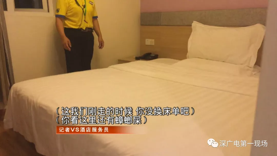 隨后,記者以衛(wèi)生狀況不理想為由,要求更換房間。而對于記者剛剛短暫入住過的這間大床房,工作人員卻并沒有重新更換床單的打算。不僅如此,記者還發(fā)現(xiàn),酒店內(nèi)其他客人退房后的房間,酒店工作人員也并沒有在第一時間進行打掃。