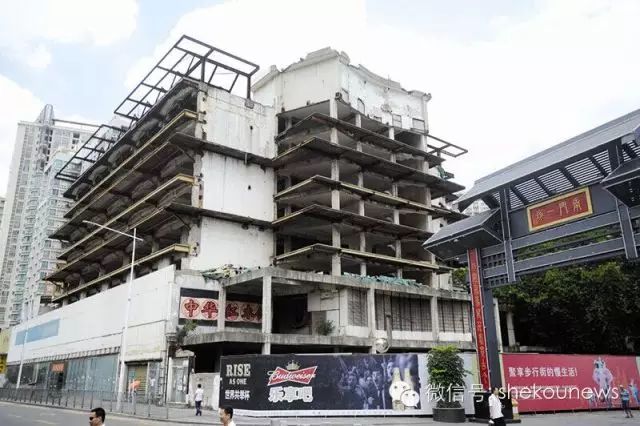 ▲破舊的南油酒店與翻新的南門一坊商業(yè)街形成巨大的視覺反差。蛇口消息報記者賀志熙攝