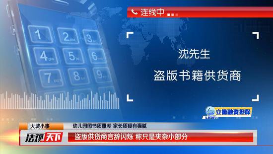 為了證明自己并未與供貨商有所勾結(jié),園長當(dāng)場給供貨商沈先生打了電話,面對大家的質(zhì)問沈先生言辭閃爍。面對園長的質(zhì)疑,這名供貨商剛開始只承認自己所供的書籍只有一小部分是盜版,不過,在園長的質(zhì)問下,最后他終于承認,自己提供的書全部都是盜版書籍。