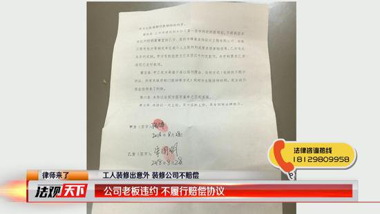 朱先生本以為雇傭雙方簽署了賠償協(xié)議就能如期得到賠償金,不料蜂巢裝飾有限公司的老板陽鋒卻違約不履行。無奈之下,朱先生只能再次找到我們,期望在記者和《法觀天下》法援律師的溝通下,蜂巢裝飾有限公司的老板陽鋒能把賠償金如約支付給他。隨后,記者與《法觀天下》嘉賓律師趙乙橋來到龍華區(qū)觀瀾街道金通盛大廈14樓的蜂巢裝飾有限公司,在這里我們見到了老板陽鋒。他表示,因?yàn)楣矩?cái)務(wù)的種種原因,第一筆賠償款的支付有所延遲。但是在中秋節(jié)之前,一定會把款項(xiàng)支付給朱先生。