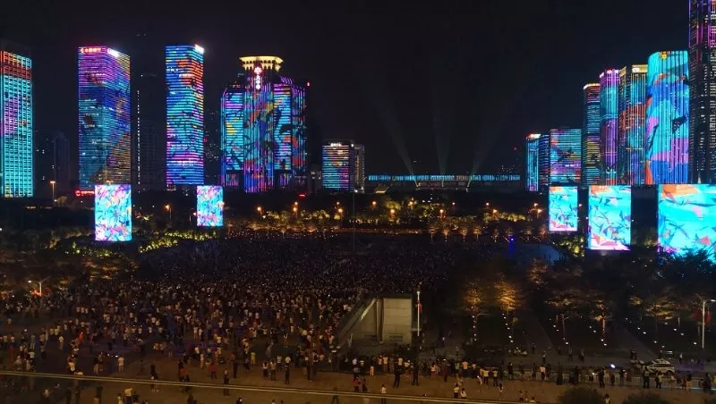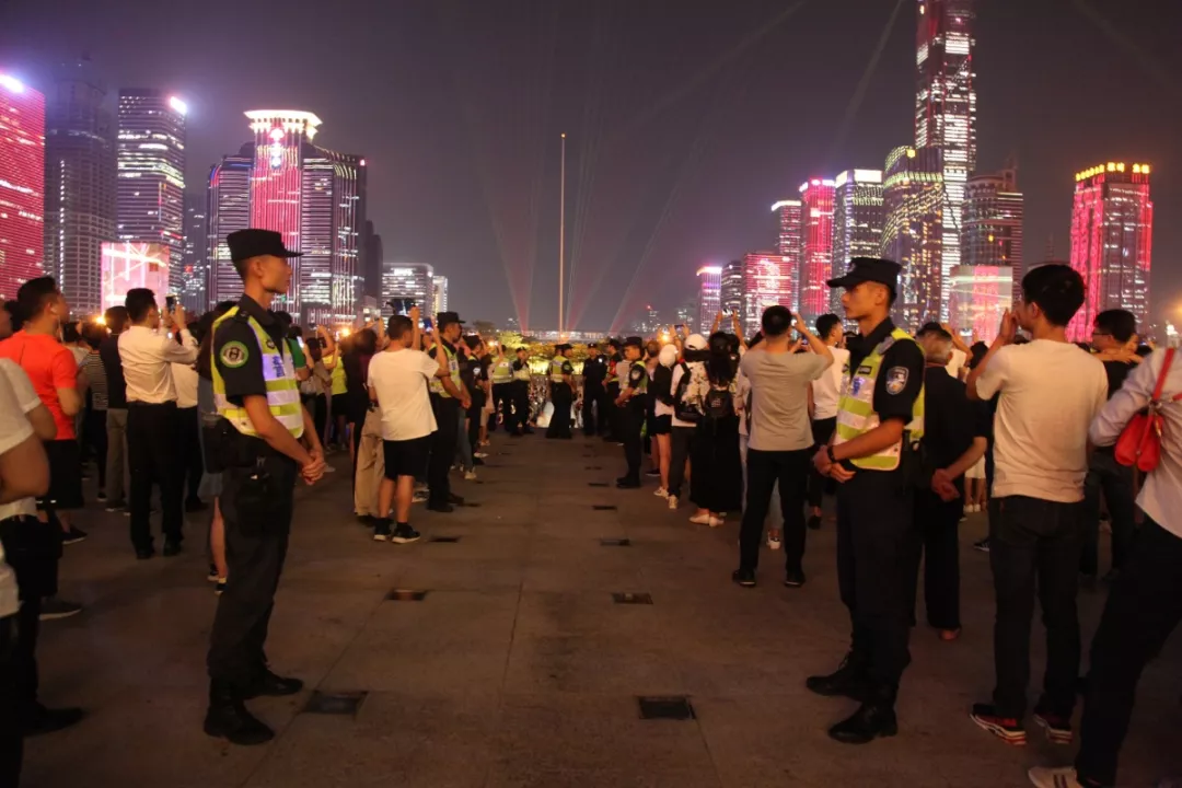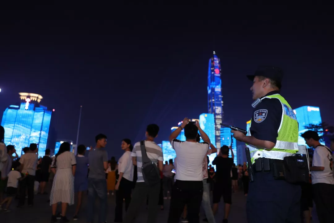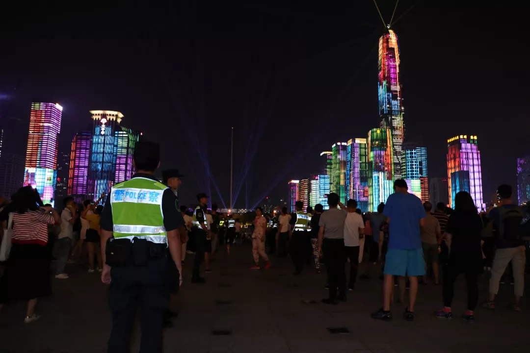 “燈光秀”活動正式表演首日,現(xiàn)場觀演人數(shù)約54300人,福田公安分局出動1000名警力在現(xiàn)場及周邊維持秩序,確?;顒禹樞蚺e行。