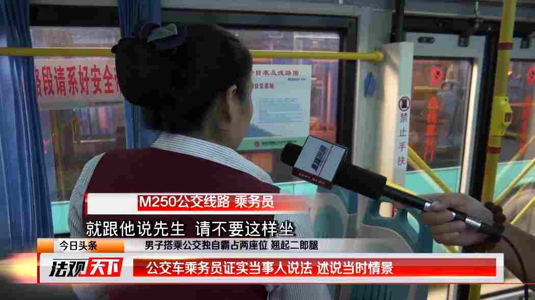 西部公汽M250線路乘務(wù)員和記者說到:當(dāng)時(shí)我發(fā)現(xiàn)他這樣坐以后,就跟他說先生,請不要這樣坐,然后可以給別的乘客讓個(gè)座位,當(dāng)時(shí)他就有點(diǎn)很不友善地說,你要干嘛,你要干什么。