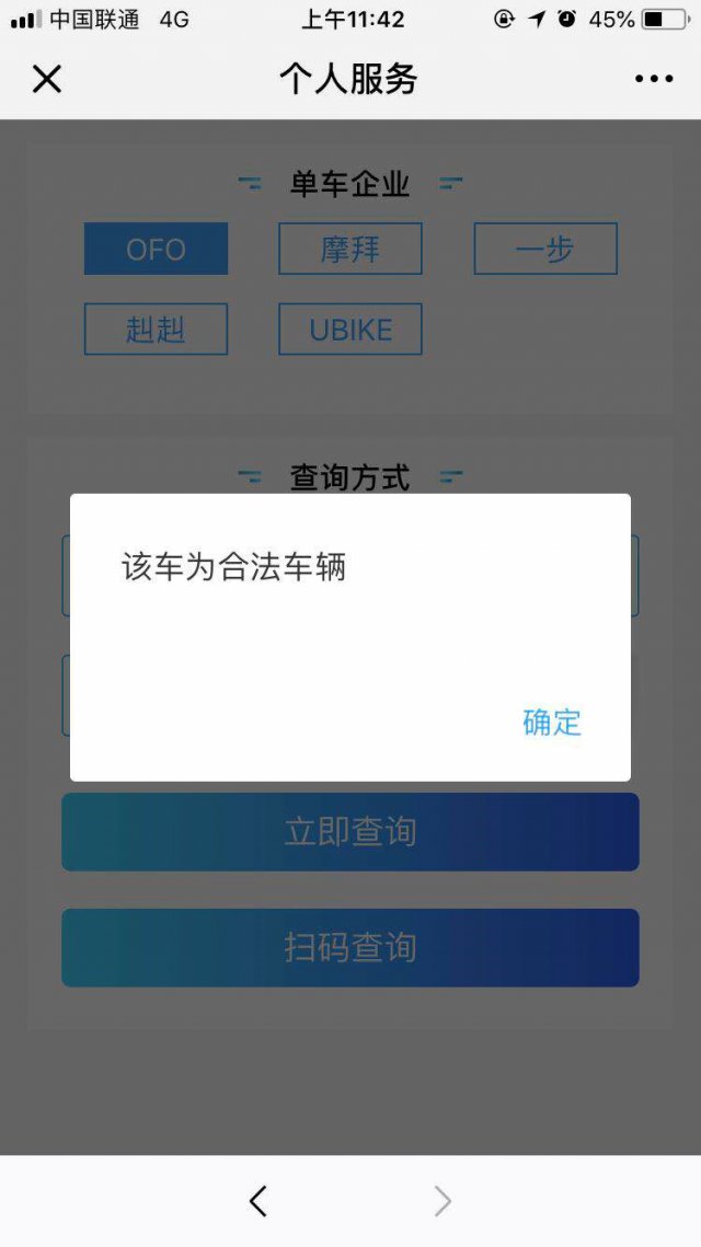 如果系統(tǒng)鑒定該車輛為合法車輛,則會彈出「該車為合法車輛」的提示。
