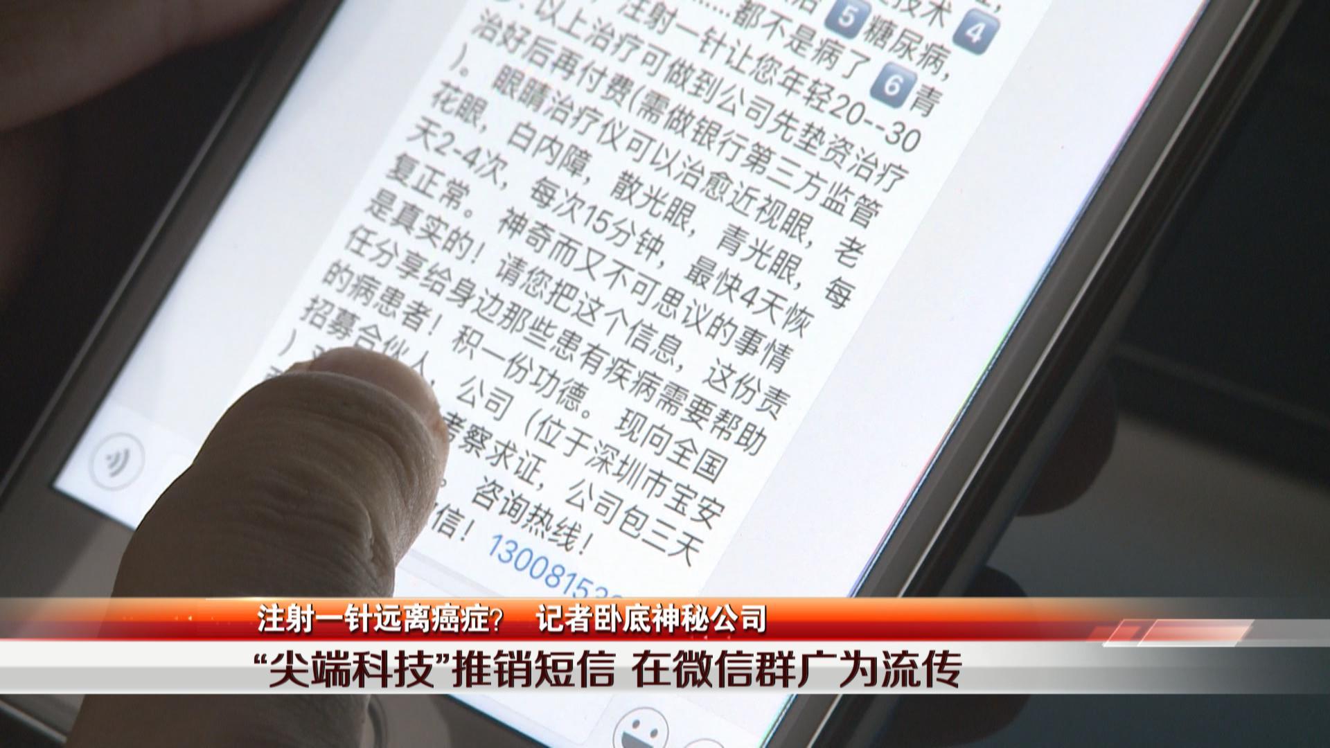 “先機(jī),先機(jī),改變?nèi)祟?lèi)命運(yùn)的生物科技”,這條號(hào)稱(chēng)改變患者命運(yùn)的短信在一些微信群里流轉(zhuǎn),短信內(nèi)容號(hào)稱(chēng)只要打一針,就能治愈身體上所有的疾病,其中包括癌癥、肢體再生、子宮再生、糖尿病、青春逆轉(zhuǎn)等,還呼吁將短信轉(zhuǎn)給有需要的患者,并表示向全國(guó)招募合伙人。