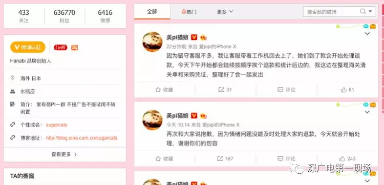 經(jīng)審訊,嫌疑人于某交代,她2013年注冊了@美Pi貓娘的微博賬號,開始做彩妝的分享和解答,2016年,已擁有近30萬粉絲的她來到深圳做網(wǎng)店,通過自己創(chuàng)立的深圳某珠寶公司做珠寶、彩妝。同時,還通過微博活動以及關(guān)愛小的動物的善舉吸引更多的人關(guān)注,共積累了62萬粉絲。