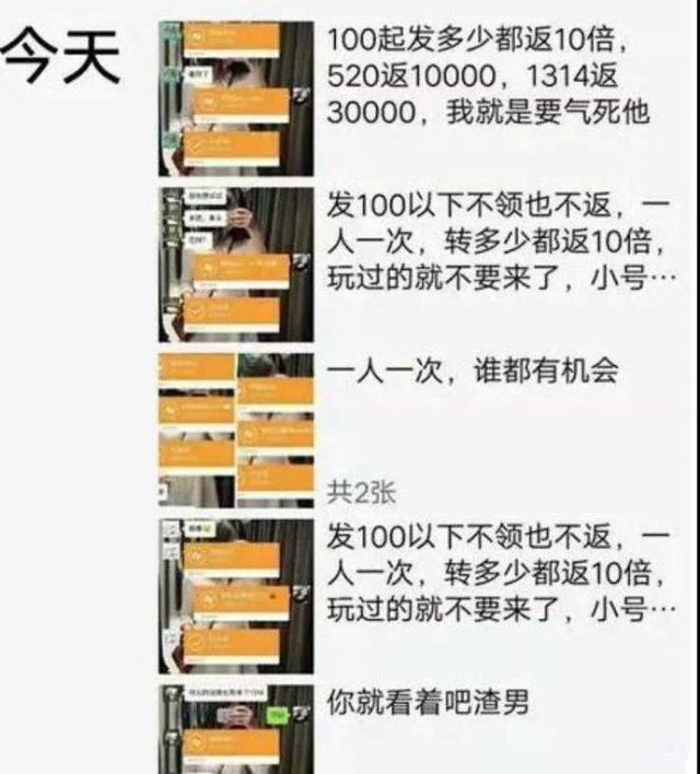 " 美女 " 們無一例外都有一個(gè) " 富二代 " 男友,分個(gè)手動不動就甩來 30 萬、50 萬。而美女本身就是高富美,誰稀罕他的臭錢,只要轉(zhuǎn)賬并備注 " 馬少輝是人渣 " 就能收到十倍返還。當(dāng)然也可能是 " 王少輝 "、" 孫少輝 "…… 隨便一個(gè)名字而已。