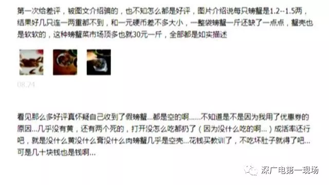 隨后陳女士和網(wǎng)購平臺聯(lián)系,對方答應(yīng)退回299元一張的蟹券。記者在該陽澄湖大閘蟹網(wǎng)購平臺看到,有不少消費者留言評價,也遇到類似缺斤少兩的情況。