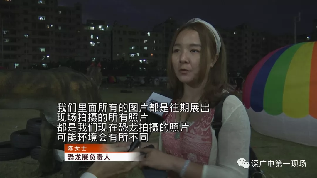 恐龍展負(fù)責(zé)人陳小姐說(shuō):“我們里面所有的圖片都是往期展出,可能環(huán)境會(huì)有所不同,因?yàn)橐郧拔覀冇性谏鷳B(tài)園公園、景區(qū)里面辦,是有一些樹木為背景的,因?yàn)槲覀冞@里只有一大片草地,可能看起來(lái)的話,造景不太美觀?!?/p>