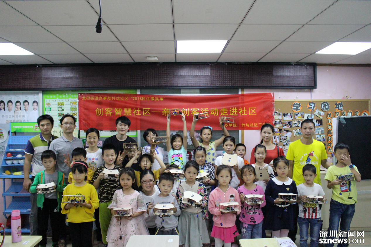 深圳新聞網(wǎng)訊 (記者 曹園芳 通訊員 徐曉霞)為培養(yǎng)轄區(qū)青少年創(chuàng)造能力和創(chuàng)新思維,讓他們養(yǎng)成數(shù)字化學習習慣,促進孩子的全面發(fā)展,2018年10月20日至28日,在坪山區(qū)龍?zhí)锝值乐窨由鐓^(qū)的領(lǐng)導支持下,“創(chuàng)客智慧社區(qū)”親子創(chuàng)客活動在新坪山人互助服務(wù)中心順利開展,該活動作為2018竹坑社區(qū)民生微實事項目活動,旨在通過形式多樣的,將數(shù)學、幾何、物理等多門學科橫向關(guān)聯(lián),讓孩子與家長一起動手動腦編程,在科技活動中領(lǐng)略創(chuàng)新和實踐的快樂。本次活動共服務(wù)居民超過100人次,共同完成20余件獨特的創(chuàng)新作品。