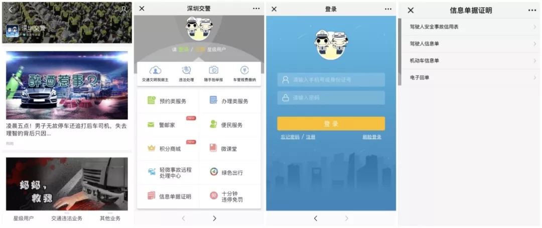 搜索生活號(hào)“深圳交警” →登錄星級(jí)用戶 →選擇“信息單據(jù)證明” →選擇需要打印的證明類型
