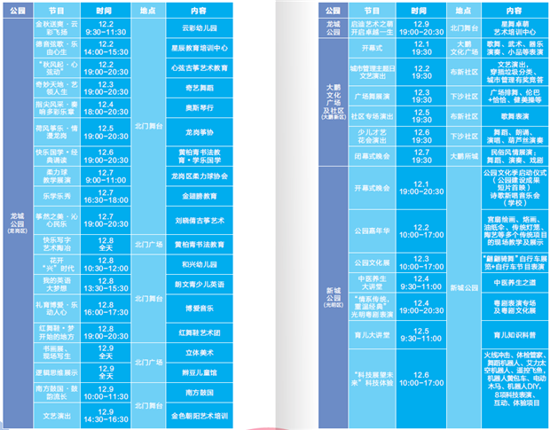 據(jù)了解,本次公園文化季各區(qū)將繼續(xù)瑞出豐富多彩的活動(dòng)和節(jié)目。例如,福田區(qū)香蜜公園將舉行第二屆集體婚禮;鹽田區(qū)內(nèi)湖公園動(dòng)靜結(jié)合,靜態(tài)推出珊瑚海洋科普展,動(dòng)態(tài)推出極限運(yùn)動(dòng)專場(chǎng)演出;龍崗區(qū)龍城公園策劃了愛跑綠道定向越野挑戰(zhàn)賽,推廣全民健身;龍華區(qū)文化廣場(chǎng)多場(chǎng)專場(chǎng)表演,舞蹈、魔術(shù)、器樂演奏等輪番上演等等。