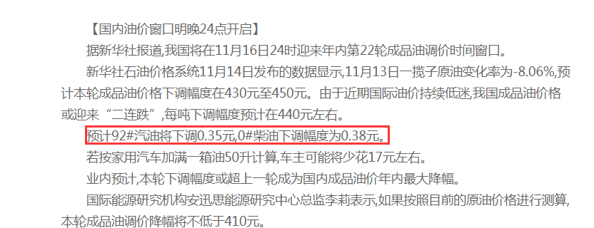 16日晚24時(shí),成品油迎來11月第二次調(diào)價(jià)