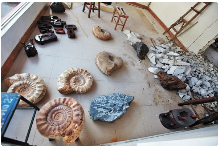 ▲涉事"科普基地"內(nèi)堆滿了各種疑似化石、隕石的石頭。深圳晚報記者李晶川攝