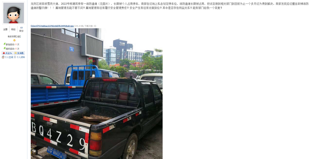深圳新聞網(wǎng)11月22日訊(記者劉婷)隨著私家車數(shù)量的增多,停車越來越難,而亂停車的現(xiàn)象也日益增多。近日,有網(wǎng)友“hepingshijie”在深圳論壇發(fā)帖吐槽,坂田坂雪崗大道2022號棟建筑旁一消防通道,長期被私家車占用,存在嚴(yán)重的安全隱患。(網(wǎng)帖地址:https://szbbs.sznews.com/thread-3823312-1-1.html