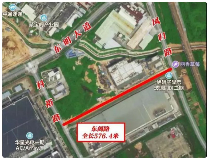 東閣路全長576.4米,道路紅線寬19米,是一條城市支路,機動車道為雙向兩車道。東閣路西接科裕路(支路),東接鳳歸路(支路),周邊有華星光電、歐菲光、旭硝子等企業(yè)。目前,東閣路已完成瀝青路面鋪設(shè)和標(biāo)線施工,驗收合格后就可以通車了。正式通車后將聯(lián)通周邊路網(wǎng),方便鳳歸路和科裕路周邊居民和企業(yè)出行交流,從鳳歸路到科裕路,不必兜個大圈子,只需直走576.4米就可以到達(dá)。