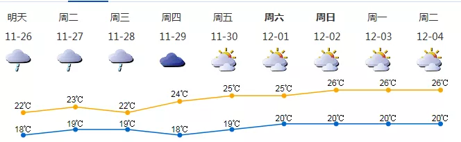 25日多云轉(zhuǎn)陰天,傍晚前后有零星小雨,早晚清涼,19-24℃;26-28日天空云量較多,間中有小雨,雨時能見度稍低;29日起多云,可見陽光。近期干燥少雨,降雨來臨前仍需做好防火安全管理。