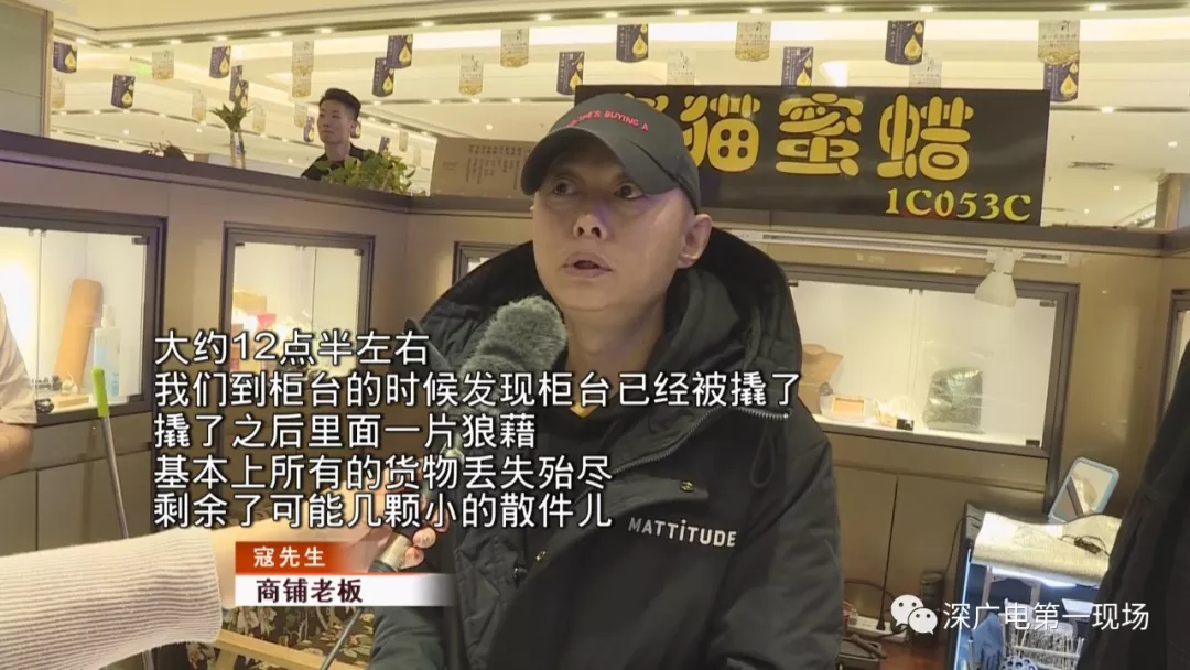 11月4日上午九點半,松崗琥珀交易市場剛開門,一名頭戴黑帽,身穿黑色衛(wèi)衣的男子便溜進(jìn)市場,趁著早上開市人員較少,男子把一間商鋪柜臺里總價值280萬元人民幣的琥珀打包帶走。