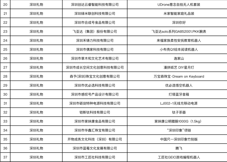 據(jù)悉,40件深圳禮物是獻(xiàn)禮改革開(kāi)放40周年,今年是深圳禮物的第三屆評(píng)選,經(jīng)過(guò)三個(gè)多月的征集,參評(píng)產(chǎn)品要求具有獨(dú)特性,充分表達(dá)深圳面貌特征,最終符合要求進(jìn)入初評(píng)的產(chǎn)品近700件,涵蓋科技、文創(chuàng)、電子、珠寶、鐘表、食品等多個(gè)領(lǐng)域,最終深圳市合成號(hào)食品有限公司的“深圳你好”,深圳市云動(dòng)創(chuàng)想科技有限公司的貓王·原子唱機(jī)以及陳鵬鵬金獎(jiǎng)鹵鵝、深圳市優(yōu)必選科技有限公司的悟空機(jī)器人等40件極具特色的產(chǎn)品脫穎而出獲得“深圳禮物”稱號(hào)。