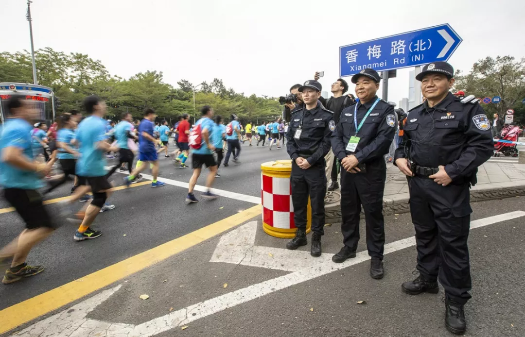 為全力做好此次馬拉松安保工作,福田警方提前謀劃、科學(xué)部署,承擔(dān)全程、半程馬拉松起點(diǎn)及6.2公里賽道的安全保衛(wèi),共出動(dòng)警力1972人,啟用20套4G現(xiàn)場(chǎng)圖傳 “千里眼”,20套視頻識(shí)別探頭“守點(diǎn)”;警力實(shí)時(shí)定位系統(tǒng)、118個(gè)高低空視頻預(yù)案“守線”;71套現(xiàn)場(chǎng)視頻執(zhí)法記錄儀。從凌晨4點(diǎn)到下午2點(diǎn),用長(zhǎng)達(dá)10個(gè)小時(shí)的安保“馬拉松”為賽事的順利開展保駕護(hù)航。