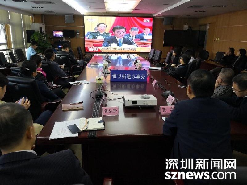 羅湖區(qū)黃貝街道組織領(lǐng)導(dǎo)干部集中收聽收看慶祝改革開放四十周年大會。