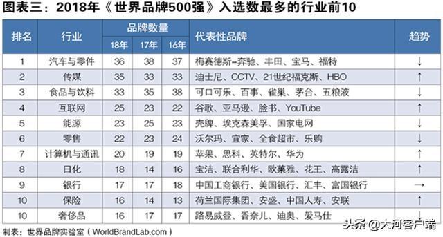 今年《世界品牌500強(qiáng)》共覆蓋了57個(gè)行業(yè)。其中,汽車與零件行業(yè)共有36個(gè)品牌入榜,排名繼續(xù)保持第一;傳媒行業(yè)今年上榜了35個(gè)品牌,位居行業(yè)第二;食品與飲料行業(yè)繼續(xù)下滑,以33個(gè)品牌退居第三;互聯(lián)網(wǎng)行業(yè)繼續(xù)保持上漲的勢頭,以25個(gè)品牌超過能源行業(yè)(23個(gè))排名第四。零售(22個(gè))以及計(jì)算機(jī)與通訊(20個(gè))行業(yè)均有小幅上漲。在過去的一年中,全球互聯(lián)網(wǎng)市場繼續(xù)保持高速增幅,2017年底全球互聯(lián)網(wǎng)用戶接近38億。但是互聯(lián)網(wǎng)行業(yè)的發(fā)展并非一帆風(fēng)順,今年三月,美國臉書公司陷入數(shù)據(jù)泄漏丑聞,引發(fā)了全互聯(lián)網(wǎng)行業(yè)公司的信任危機(jī),消費(fèi)者開始注意到保護(hù)數(shù)據(jù)隱私的重要性。