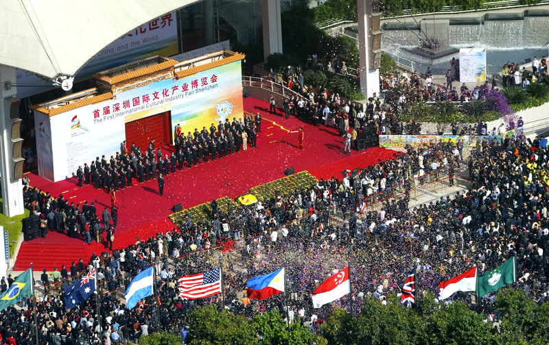 2004年,首屆深圳國(guó)際文化產(chǎn)業(yè)博覽會(huì)開幕式現(xiàn)場(chǎng)。丁慶林?jǐn)z