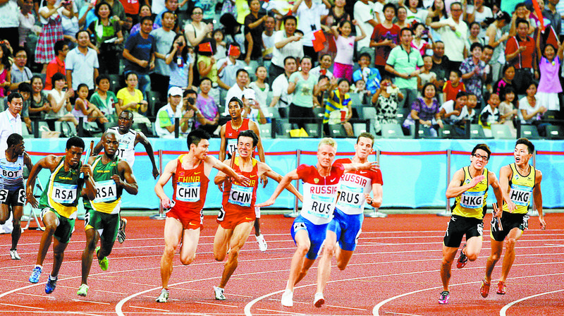 大運(yùn)會(huì)中深圳健兒男子4X100米接力賽上創(chuàng)佳績(jī)。鄭東升攝