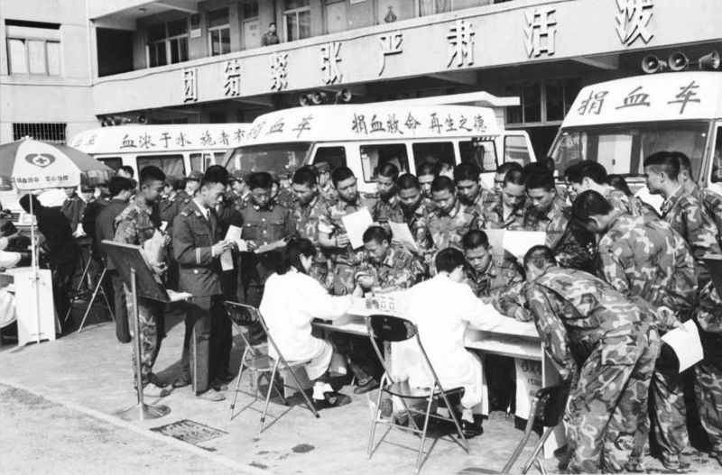 當(dāng)年深圳有三輛伊維柯捐血車,1997年3月1日一起開到部隊(duì),官兵爭(zhēng)相獻(xiàn)血。余海蓉?cái)z