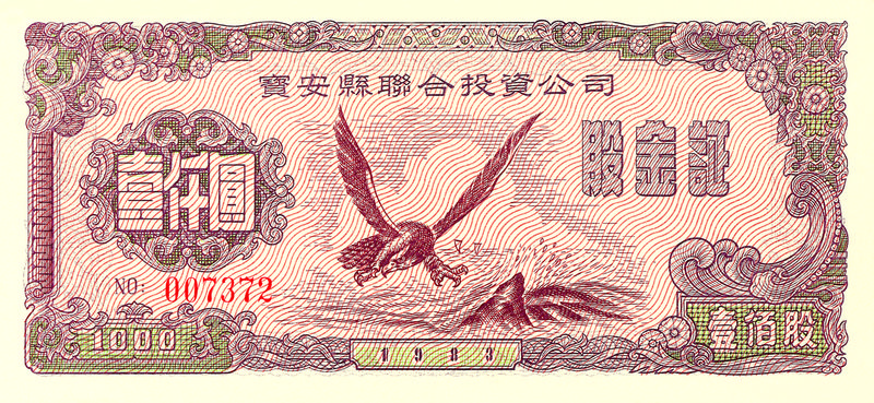 1983年中國寶安集團發(fā)行的新中國第一張股票。