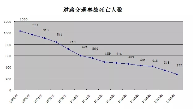今年以來截止12月21日,我市的道路交通事故死亡人數(shù)實現(xiàn)了17.31%的大幅下降,預計全年全市道路交通事故死亡總?cè)藬?shù)將低于300人,在全市機動車保有量繼續(xù)增長的情況下,預計年萬車事故死亡率約為0.9左右。