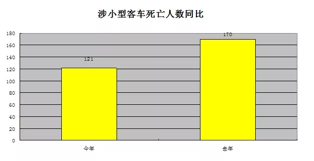 今年以來,全市共發(fā)生涉小型客車事故死亡121人,同比減少49人下降28.82%,占全市事故死亡下降總?cè)藬?shù)的84.48%。由于小型客車的構(gòu)成主要為私家車,顯示我市私家車交通安全水平顯著提高。