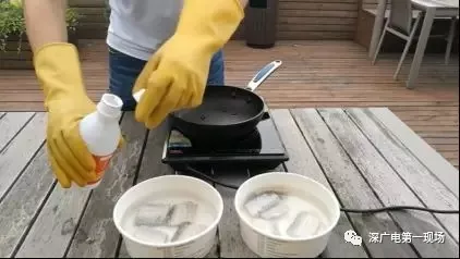 第二步,在其中一份帶魚中,倒入少量福爾馬林,并浸泡5分鐘左右;