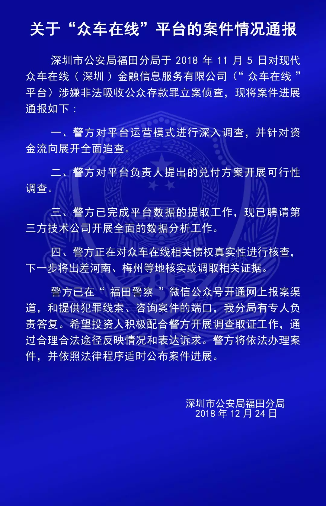 關于“合拍在線”“壹佰金融”“五星財富”“眾車在線”“財富中國”“小零錢”“錢爸爸”“合時代”和“前金融”平臺的案情通報