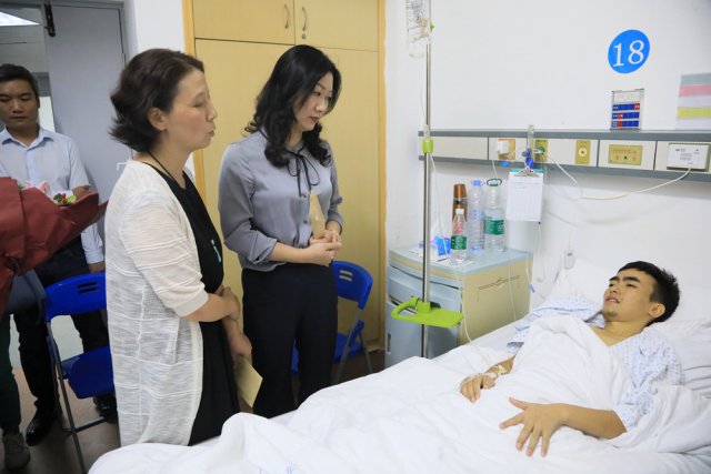 ▲深圳晚報、深圳市紅十字會、深圳市關(guān)愛行動公益基金會等單位領(lǐng)導和工作人員看望病中的向金華。