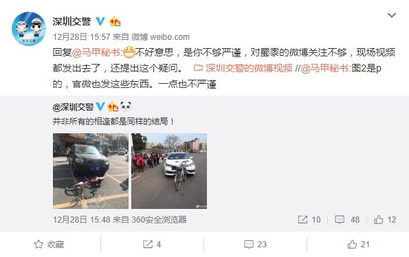 這……真的不是 P圖?確定不是擺拍?圖片發(fā)出之后,不少網(wǎng)友表示難以置信,甚至有人 @深圳交警表示抗議:"圖是 p的,官微也發(fā)這些東西。一點也不嚴(yán)謹"。深圳交警看后只能亮出以上視頻,"以示清白"!