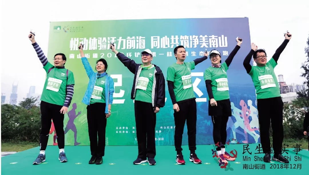 2018年12月31日下午3時(shí),南山區(qū)政協(xié)主席陳軍,區(qū)委常委、政法委書記黃湘岳,區(qū)委常委、區(qū)委(政府)辦公室主任胡蕓,區(qū)人大常委會(huì)副主任、區(qū)總工會(huì)主席路玉萍,區(qū)人大常委會(huì)副主任鄧志榮,南山街道黨工委書記杜煒平,南山街道辦事處主任黃北球同時(shí)打響發(fā)令槍,南山街道2018環(huán)鏟灣渠-桂廟渠生態(tài)歡樂跑正式開跑,900余名跑步愛好者從前灣四路鏟灣渠河畔起跑,朝前海石快樂奔跑。