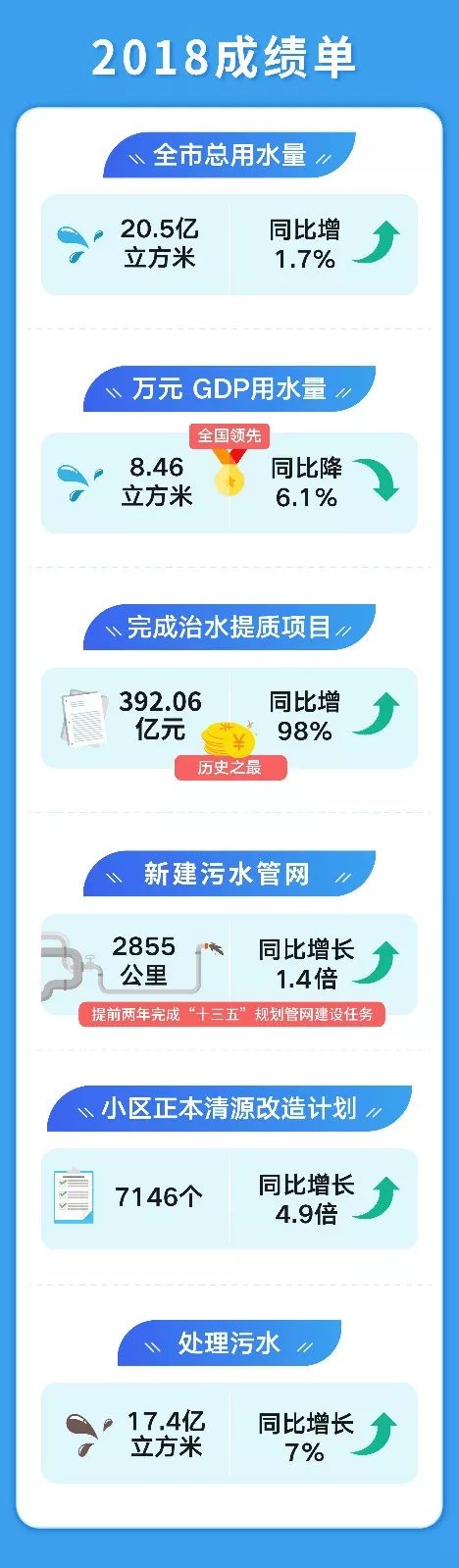 水資源保障能力持續(xù)加強(qiáng)!全市自來(lái)水水質(zhì)綜合合格率保持在99.9%!我們完成優(yōu)質(zhì)飲用水入戶工程小區(qū)312個(gè)和120個(gè)供水管網(wǎng)改造工程社區(qū),創(chuàng)建311個(gè)優(yōu)質(zhì)飲用水達(dá)標(biāo)小區(qū)。