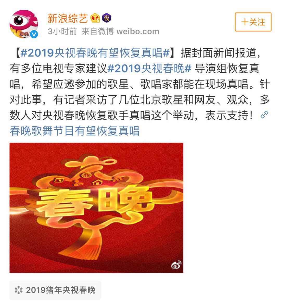 還 據(jù)說,2019央視春晚有望恢復(fù)真唱