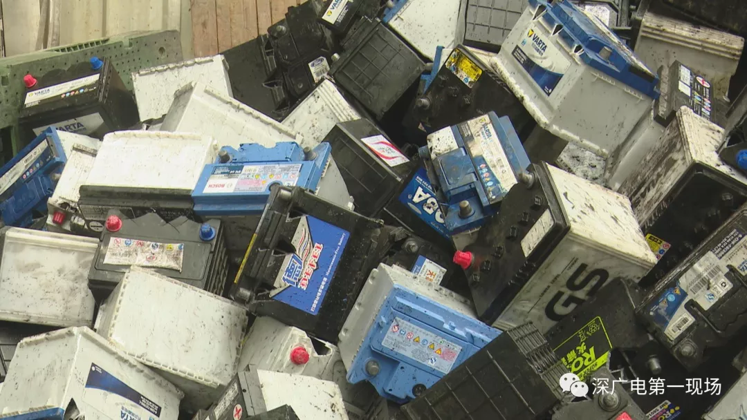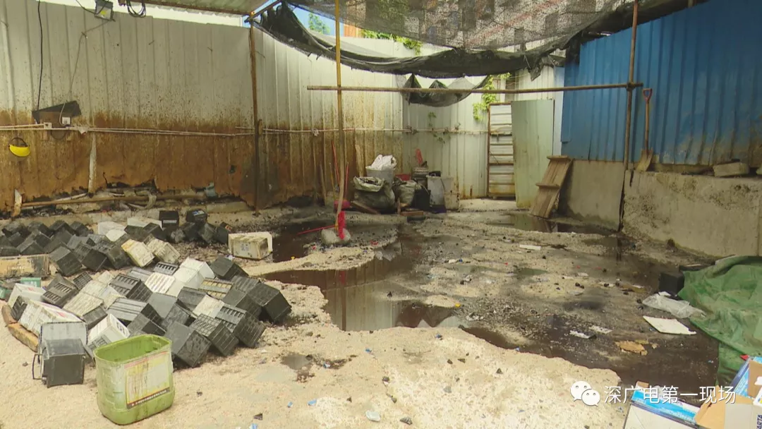 這是昨天下午2點多,記者跟隨南山區(qū)環(huán)保水務(wù)執(zhí)法人員,到現(xiàn)場查處時看到的情形。一處近500平米廢品回收場站內(nèi),廢舊電池堆積如山。