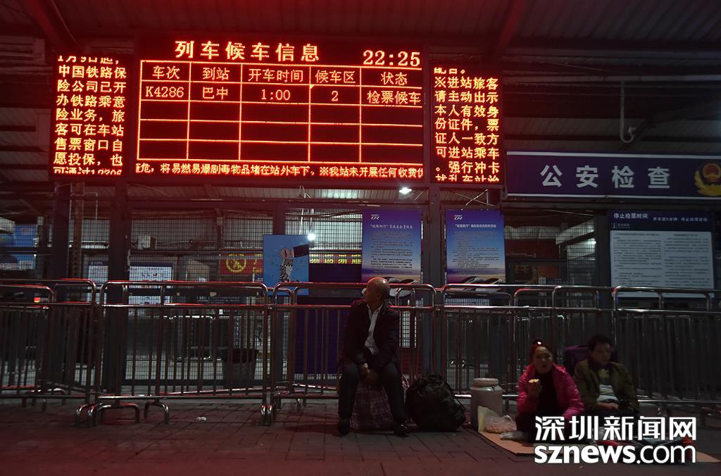 深圳新聞網(wǎng)1月21日訊 (記者 楊浩翰)今天是春運(yùn)的第一天,回家的人們開始踏上歸途。1月21日凌晨一點(diǎn),由深圳西站開往巴中的K4286次旅客列車緩緩開出,共2300多名旅客乘坐該趟列車返鄉(xiāng)。