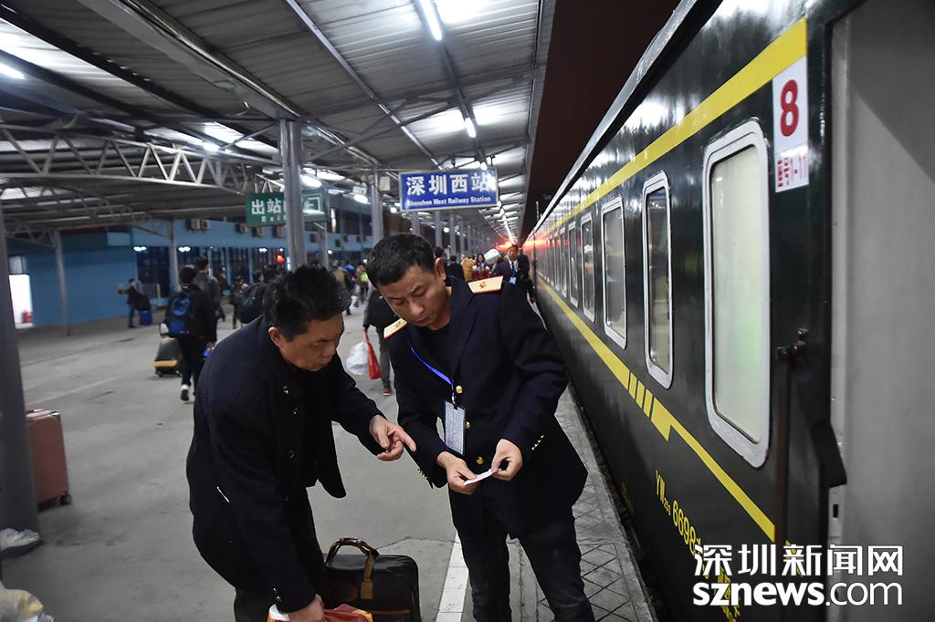 “終于可以回家了!”在深圳工作的要回萬(wàn)州的李先生說(shuō),“我們一年就回一次家,就趕上今年春運(yùn)深圳西站第一班列車,這里的義工和工作人員的服務(wù)很貼心,很滿意?!?/p>