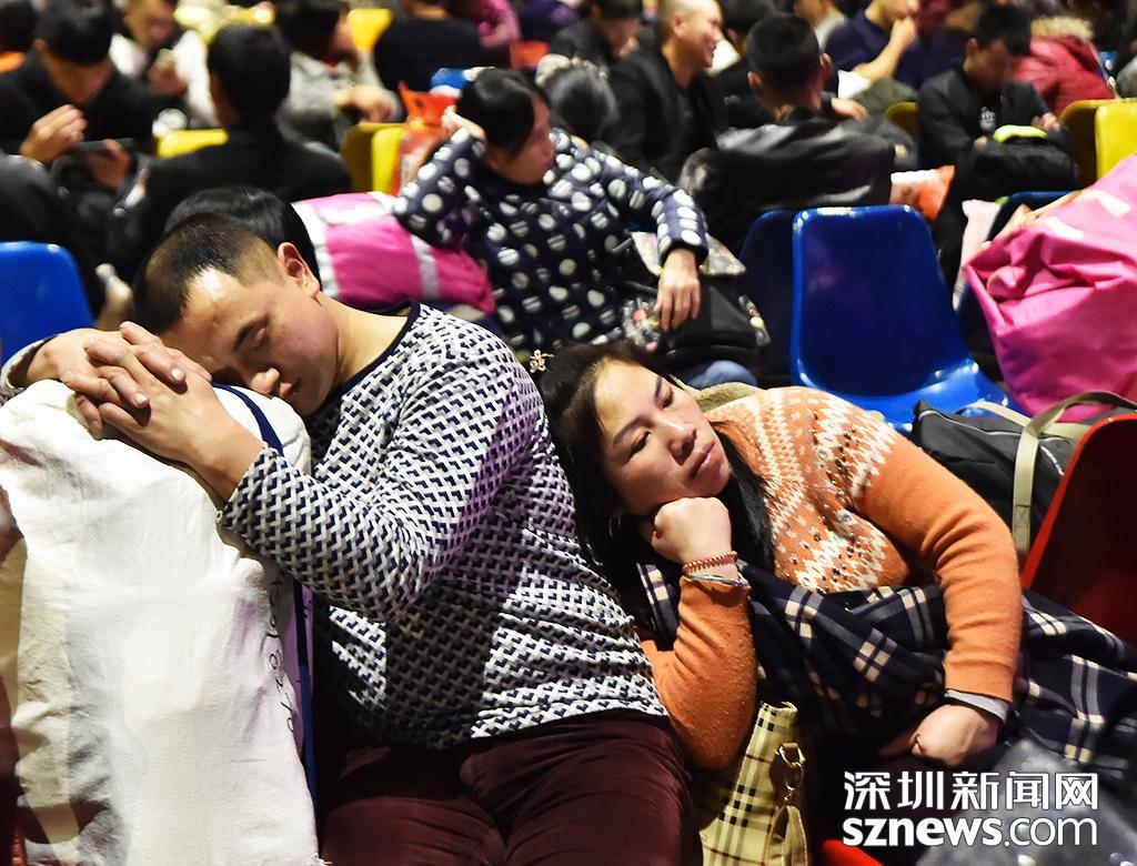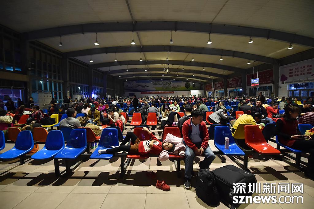 深圳西站候車廳幾乎坐滿乘客,據(jù)統(tǒng)計(jì)有近2400多人乘坐該班次列車