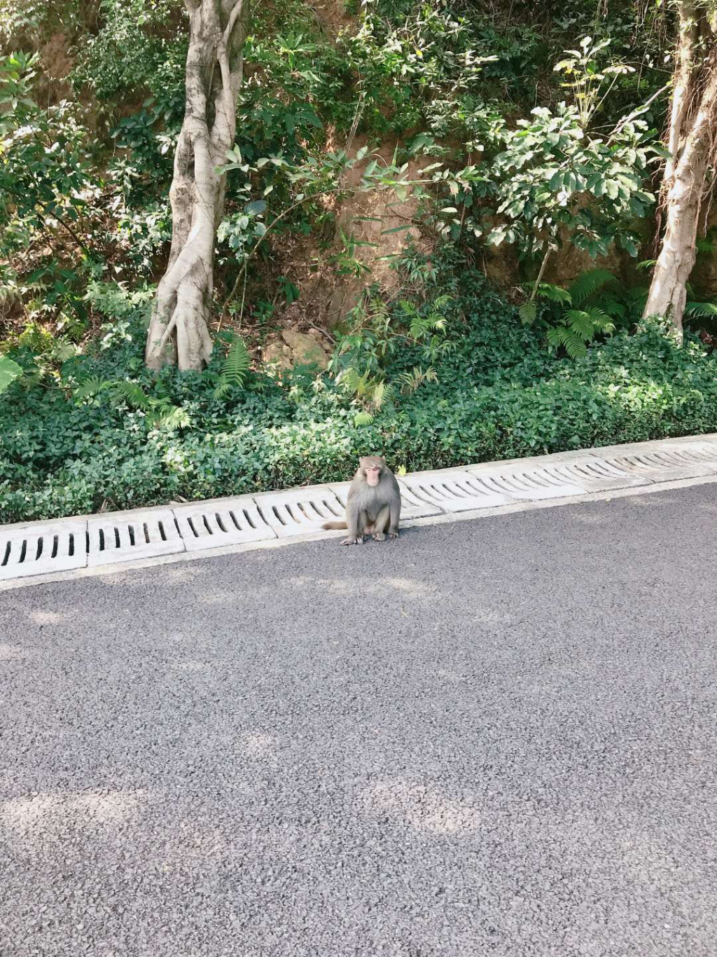 "這個東西很聰明,愛吃蘋果、香蕉和糖果,估計有三四十斤重,很肥。"今天上午,記者前往梅林山公園探訪猴子的蹤影。從梅山苑二期的梅林山公園入口一上公園主干道,記者就發(fā)現(xiàn)保安員陳先生正在路邊值守,梅林山公園管理處發(fā)現(xiàn)猴子后,就安排了保安員巡查看護。陳先生告訴記者,20日早上7點多猴子就出現(xiàn)在路邊,當(dāng)時公園人少,沒有討到吃的就走了。上午10點多,乘著游玩的人多猴子又跑出來湊熱鬧,保安員發(fā)現(xiàn)后拿了香蕉、橘子和糖果給它,猴子也一點不客氣,從人手里接過來就吃。原本靜謐的公園隨著猴子的出現(xiàn)熱鬧起來,圍觀的市民也紛紛慷慨解囊。這只胖乎乎的猴子一點也不怕人,最近時距離人不到一米遠,大家也親切叫它"肥仔"。