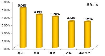 第四季度教練員點(diǎn)評(píng)占比最高的前5名駕校分別為:科大、暢通、鵬安、廣仁、福永照明。