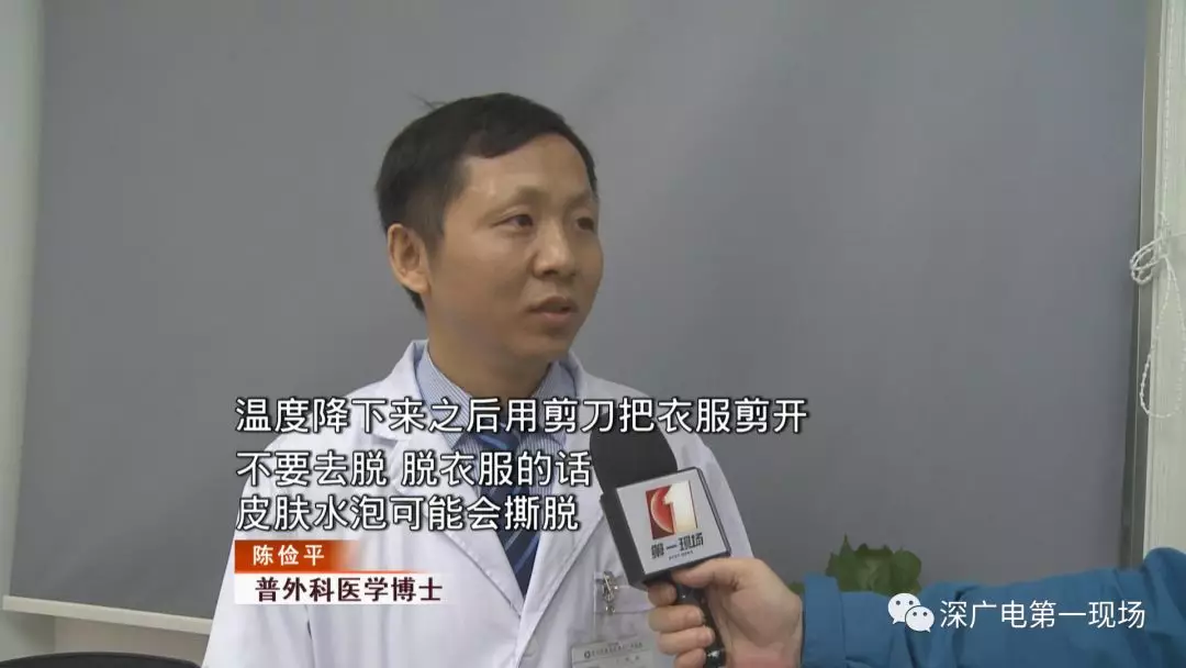 燒傷科醫(yī)生介紹,被開水燙傷,尤其是小孩,現場的人應第一時間找自然水等來持續(xù)降溫,隨后用剪刀剪開傷者的衣物,期間盡可能避免水對傷口的感染、也不能直接撕下衣物,防止造成二次傷害。