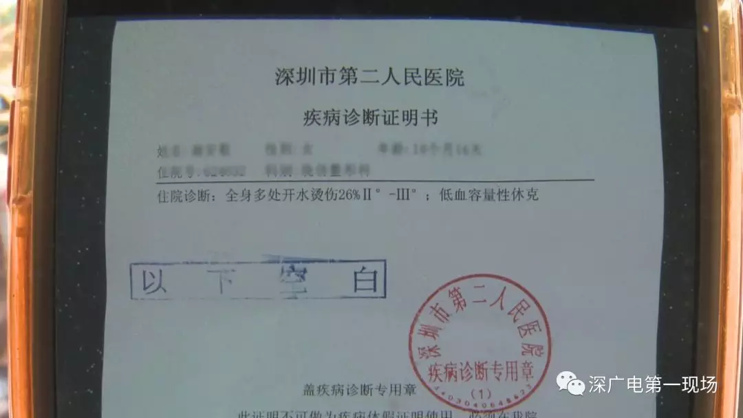 深廣電第一現場2019年1月25日訊 孩子天性好動,照顧孩子千萬不能疏忽大意。上周一名10個月大的女嬰被一壺剛燒開的水淋在了身上,女嬰全身被嚴重燙傷。