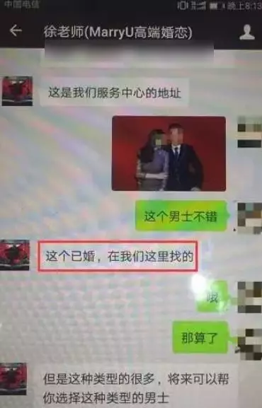 不僅如此,當(dāng)朋友拿著陳先生的結(jié)婚照,詢問(wèn)這名工作人員時(shí),工作人員立馬表示,陳先生是在他們婚戀公司找到的對(duì)象。