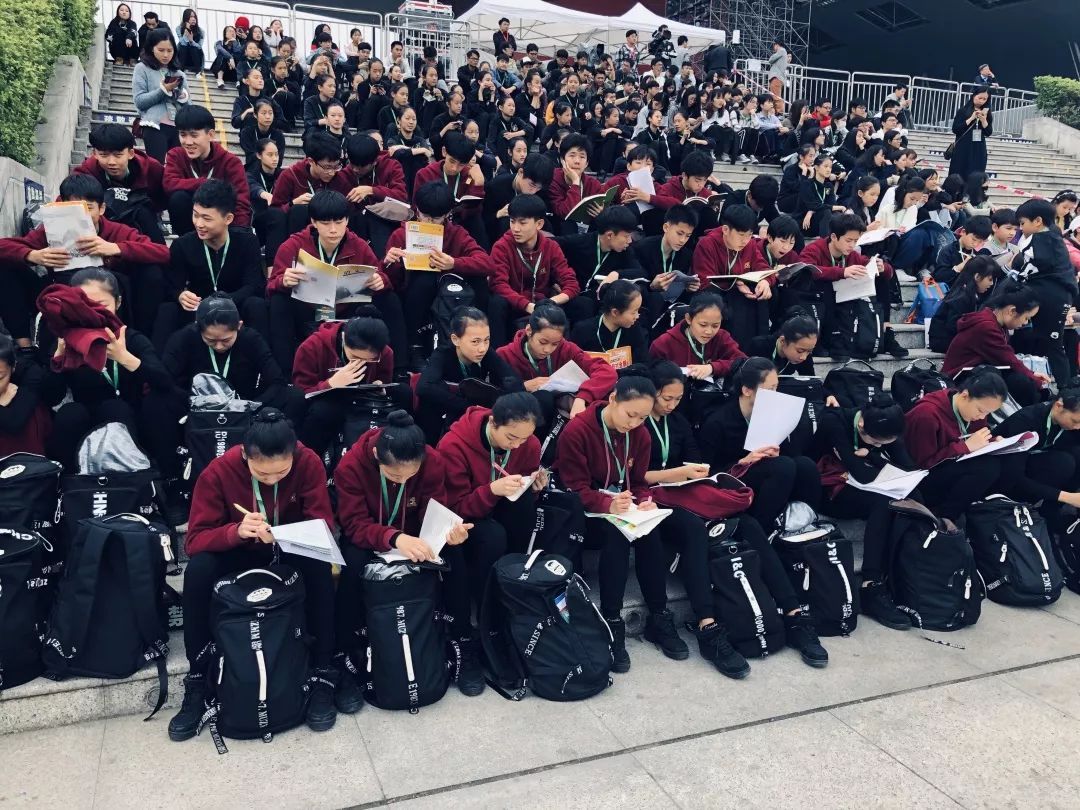 彩排階段,是深圳各中小學(xué)期末考試時(shí)間,學(xué)生們邊排練邊學(xué)習(xí),不誤期末考試,候場時(shí)時(shí)常可以看到同學(xué)們埋頭復(fù)習(xí)的場景,她們利用在訓(xùn)練期間短暫的休息時(shí)間,溫習(xí)復(fù)習(xí)資料和做課后作業(yè)。