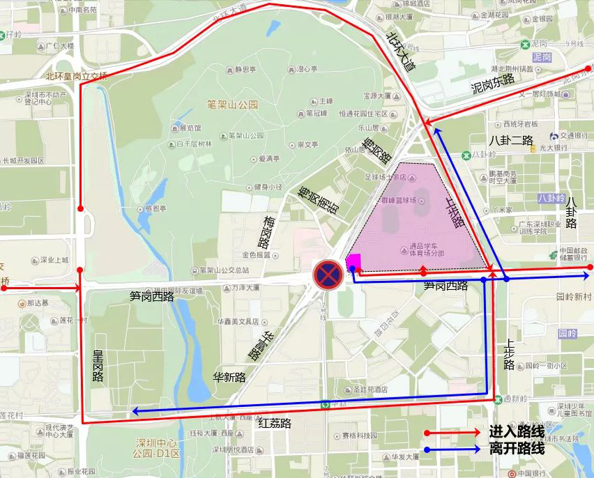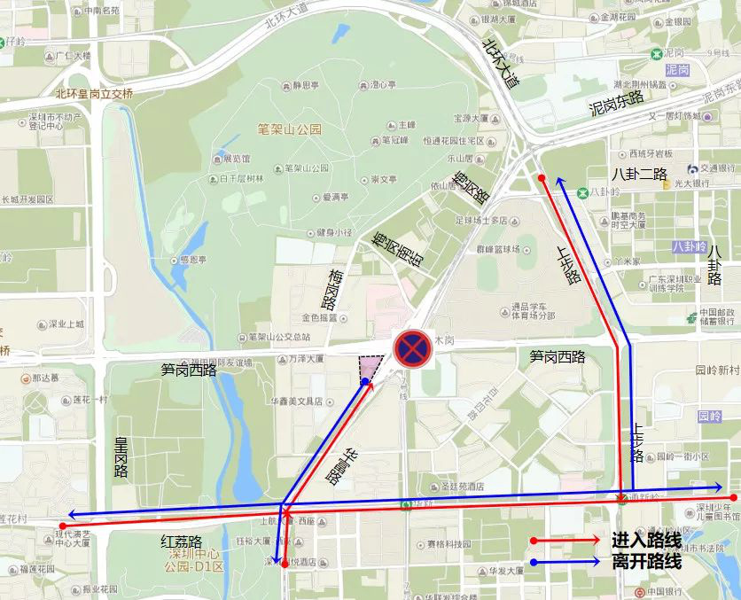 車行交通調(diào)整為:筍崗西路 -梅崗路;紅荔路 -皇崗路 -筍崗西路 -梅崗路;筍崗西路 -泥崗西路 -靜逸街(梅崗南街)。